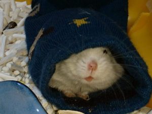 他の子はゲージについていたプラスティックの小屋や、バルサのおうちも使っていたのですが、衛生的に微妙だったのですよね。うちの子たちだけなのかもしれないのですが、プラスティックの小屋は寝床とトイレを兼用にしてしまって、湿気がたまりしっとりべったりしてにおいもすごくなってしまったんです。バルサ製のおうちはあっという間に噛み千切られてしまいました。しかし、朝方の寒さを考えると防寒対策をしないわけにはいきません。